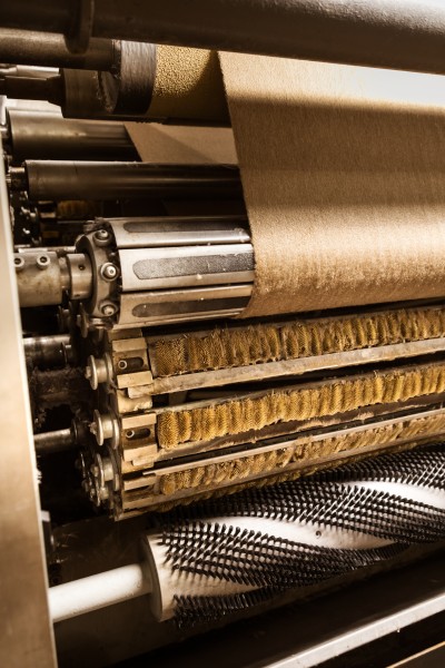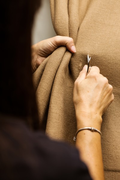 It is one of the most important luxury manufacturing groups, a family story continuing for fourteen generations, successfully blending modernity—the factory is a modern, quiet, and minimal building—with the most respectful traditional processes, starting with carding, a sort of finishing of the fabric using thistle flowers.