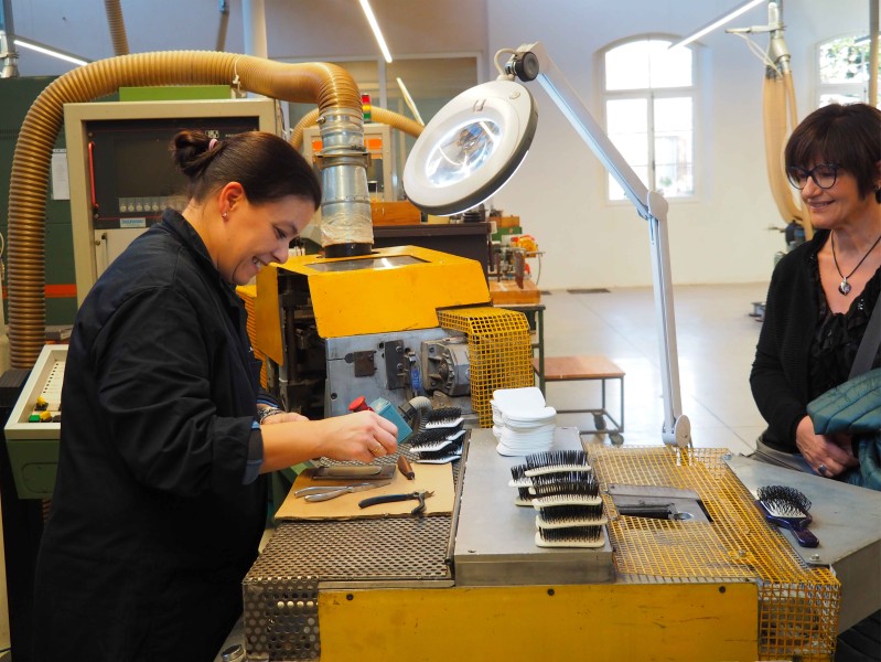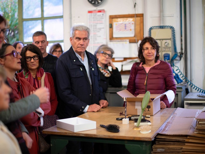 A long brick wall. In the heart of Treviso, at 21 via Luzzatti, there is a work of industrial archeology that could suggest a different productive past. Beyond the large entrance arch, which is detailed with the initials of the brand’s founder, a majestic magnolia welcomes you in the center of a courtyard. All around, the large windows, where to this day, like back in 1869, craftsmen create and finish the sought-after brushes that are appreciated all around the world. The scents of the Italian garden tell the story of the family’s four generations and their love for beauty.