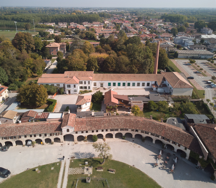 Nella piazza semi-circolare creata dalla famiglia dei veneziani Badoer c’è il cuore di Badoere di Morgano, in provincia di Treviso. A uno dei quattro lati dell’ampia corte di ciottoli bianchi, dove si trova la Tessitura La Colombina, si sente il battito dei 14 telai ortogonali in legno. Sono passate quattro generazioni, una migrazione dalle filande della seta lombarda (di cui è originaria la famiglia Colombo) alla lana e un’industria di 120 persone. La sua anima è racchiusa tra i tessuti a mano, così come si facevano nel 1985, mentre la selezione delle materie prime – dalla canapa all’ortica fino ai fili metallici, rappresenta il futuro.