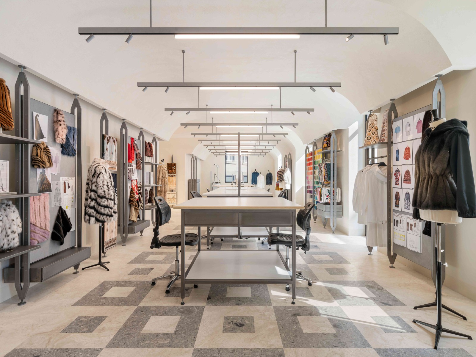 Sette piani, 910 metri quadrati, un angolo di Roma trapiantato a Milano. In un edificio razionalista, opera di Emilio Lancia, tra corso Matteotti e via Montenapoleone, ristrutturato rispettando la storia e innestando i tratti distintivi della Maison, ecco il nuovo Palazzo FENDI, un negozio, sì, ma quasi una galleria d’arte con opere di Alvarez, Sironi, Pomodoro e Albini.