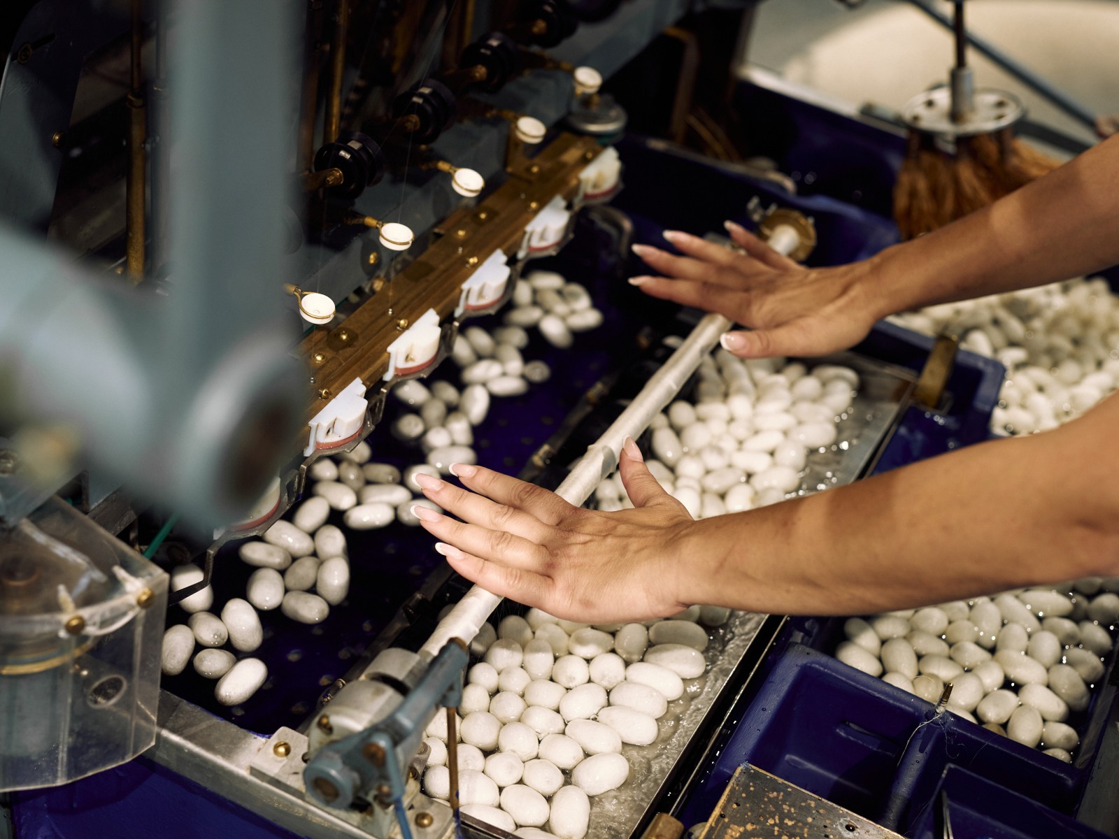 La Villa Veneta è lambita da un canale, immersa in un parco, incastonata nella campagna tra Padova e Vicenza. Presina è il nome della località, frazione di Piazzola sul Brenta, La Palladiana è quello della Villa perché al Palladio è attribuito il progetto. Ed è questa la destinazione per incontrare D'orica, l’azienda che ha trasformato l’arte orafa in sartoria del lusso: qui i gioielli si creano con le mani, non c’è disegno ma ci sono idee che prendono forma direttamente dalle mani. E con le mani ogni pezzo viene realizzato. Ago e un filo d’oro cuciono i monili, e ora una nuova collezione unica al mondo, tenacemente e orgogliosamente Made in Italy, si aggiunge al catalogo: si chiama Treesure, e al posto del filo d’oro a legare i gioielli è un filo di seta. La barchessa di Villa la Palladiana è diventata il cuore del progetto: qui la seta, che nella storia ha fatto grande la Serenissima ma da 50 anni in Italia non si produceva più, è tornata a casa.