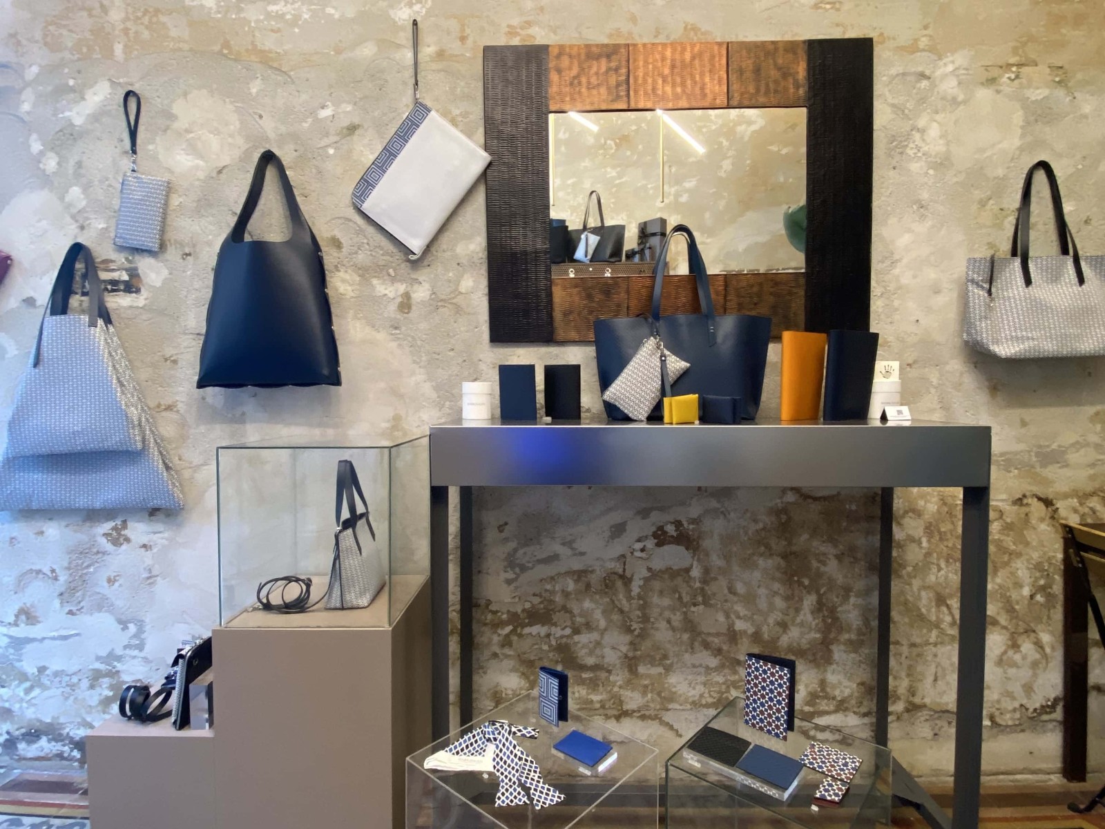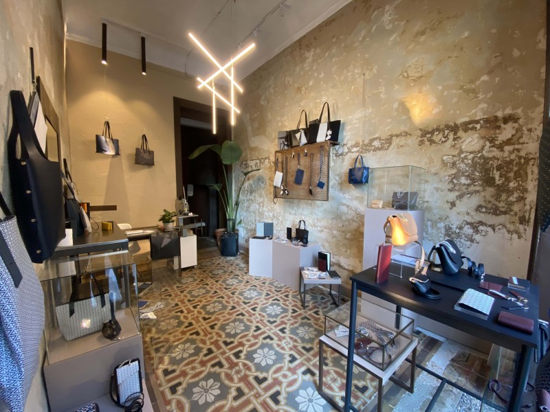 Siamo in via Marcello Malpighi a Milano, a due passi da Porta Venezia. Qui, dentro ventotto metri quadri, si scoprono lavorazioni sul cuoio che richiamano antichi mosaici, profili architettonici moderni e paesi lontani. È il design di Mark Farhat Giusti, il direttore creativo anglo-libanese che si è innamorato del saper fare italiano e ha deciso di creare qui il suo flagship. L’obiettivo è mostrare cosa significa creare un pezzo unico – come pochette, borse, marsupi o zaini - fatte a mano direttamente dagli artigiani in loco. L’ispirazione, invece, arriva dall’arte e dalle forme geometriche, proprio come quelle scoperte sul pavimento dello spazio milanese in fase di ristrutturazione o dai decori dorati che riempiono le crepe dell’intonaco nelle pareti, in un kintsugi tutto personalizzato.