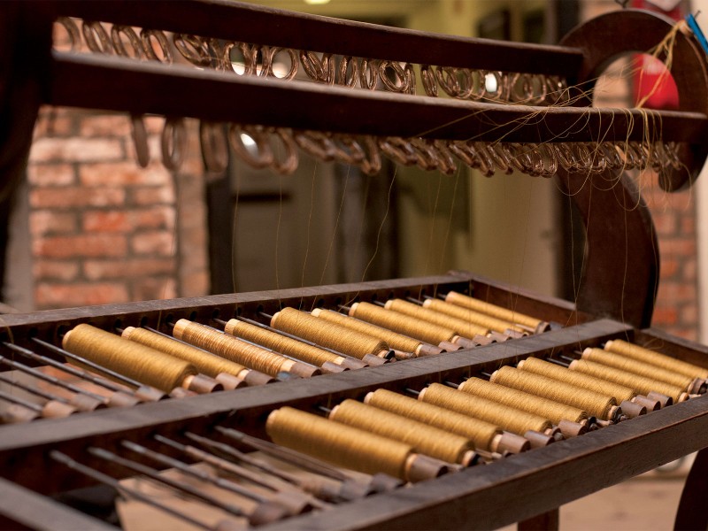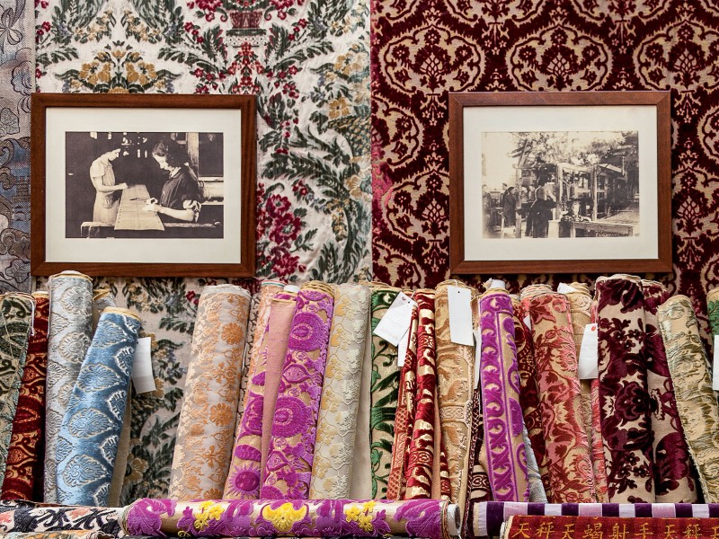 La sede della Tessitura Luigi Bevilacqua sorge nel cuore del sestiere Santa Croce, a due passi dal Canal Grande: è lì che dal Cinquecento la famiglia Bevilacqua mantiene viva una delle tradizioni più antiche della città. Oltre il portone di ingresso, i telai settecenteschi recuperati da Luigi Bevilacqua nel 1875 dalla Scuola della Seta della Serenissima, gli stessi raffigurati nell’Enciclopedia di Diderot e D’Alembert. Non solo velluti fatti a mano, ma anche broccati, damaschi, lampassi e rasi per teatri e residenze prestigiose come la Casa Bianca, il Cremlino e il Municipio di Stoccolma.