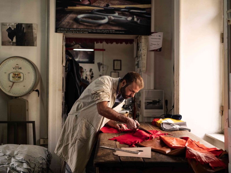 Dove i guanti si fanno a mano da più di cent’anni. È il 1923 quando Gennaro Squillace fonda Omega nella città un tempo conosciuta come la capitale del guanto, nel quartiere Sanità. A Napoli l’accoglienza è di Alberto Squillace, quinta generazione di maitre gantier di famiglia. Un percorso che inizia dalla concia alle pendici del Vesuvio e continua nella selezione di pelle pregiata come l’agnello plongè, il peccary, il carpinchos e il cervo. Poi il taglio (senza sprechi) nel laboratorio sui tavoloni di legno che portano ancora i segni degli attrezzi di un secolo di mestiere, fino alla cucitura delle fodere in seta e cachemire. Sono oltre venticinque i passaggi necessari per realizzare un guanto a forma d’arte secondo l’unità di misura in pollici francesi (per cui ogni pollice equivale a un dodicesimo di piede di Carlo Magno). Tra i disegni per gli ultimi modelli, i progetti in corso per le maison d’alta moda o le spedizioni pronte per il Giappone fino alle fotografie di famiglia appese alle pareti. Il fascino di Omega è tutto al quarto piano del numero 12 di via Stella.