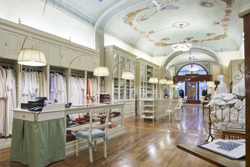 Aprirà al pubblico il laboratorio (850 mq nel vecchio cuore di Firenze, in Via delle Belle Donne) dove nasce la lingerie di alta moda scelta dalla duchessa di Kent, da Paola del Belgio, da Jane Fonda, da emiri, rock star ecc. attratti dall’arte del ricamo di origine ottocentesca applicata a capi unici e preziosi. E poi ci sarà l’incanto della biancheria per la casa, le sete, i lini, usata dalle famiglie reali di tutto il mondo (Windsor, Orange-Nassau, Borbone) e dai Rockefeller, dai Rothschild, dai Kennedy, dai Getty. Nell’atelier c’è la collezione privata di migliaia di pezzi che vanno dal 1500 al 1960.